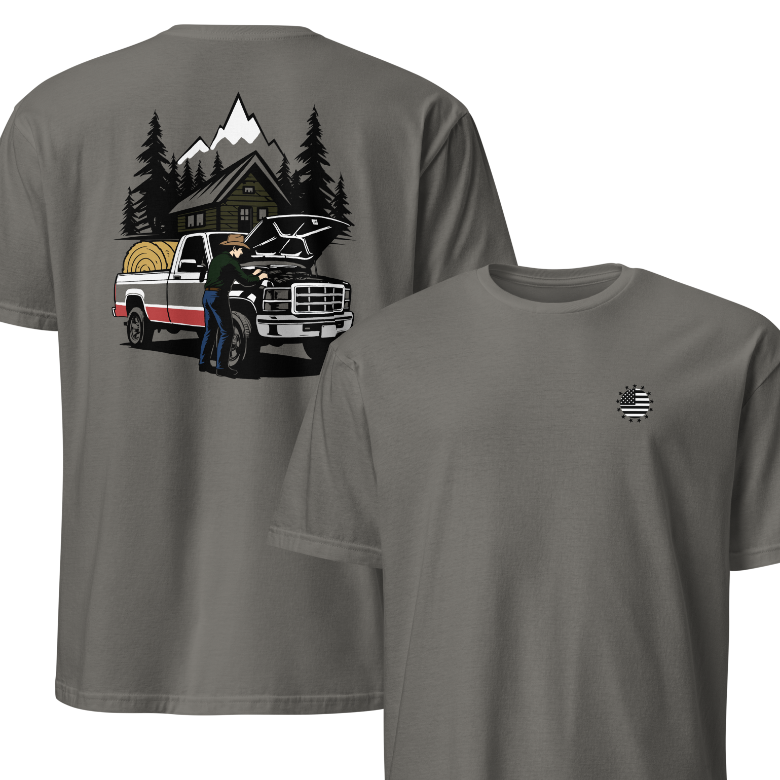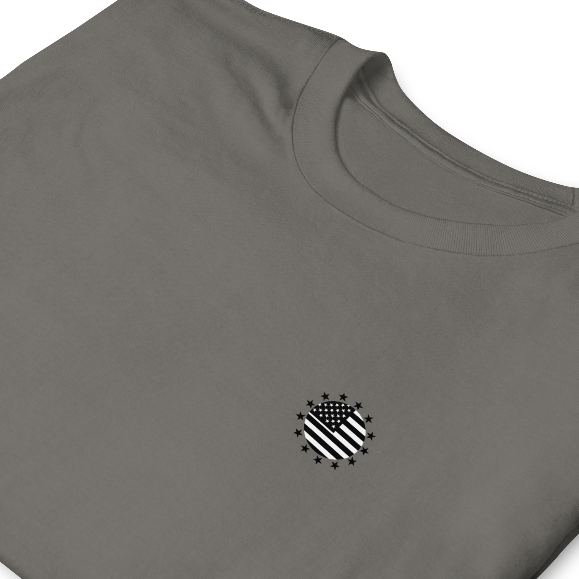 Here's the DEETS. Made from 100% ring-spun cotton, because we don't mess around. This unisex tee is built for real life — the kind with early mornings, long days, and a little chaos in between. It’s soft enough for movie night, and durable enough for yard work (you gotta look good for the neighbors 😎). Made, packaged, and shipped in the USA by people who understand that a solid tee is hard to come by, but not impossible.